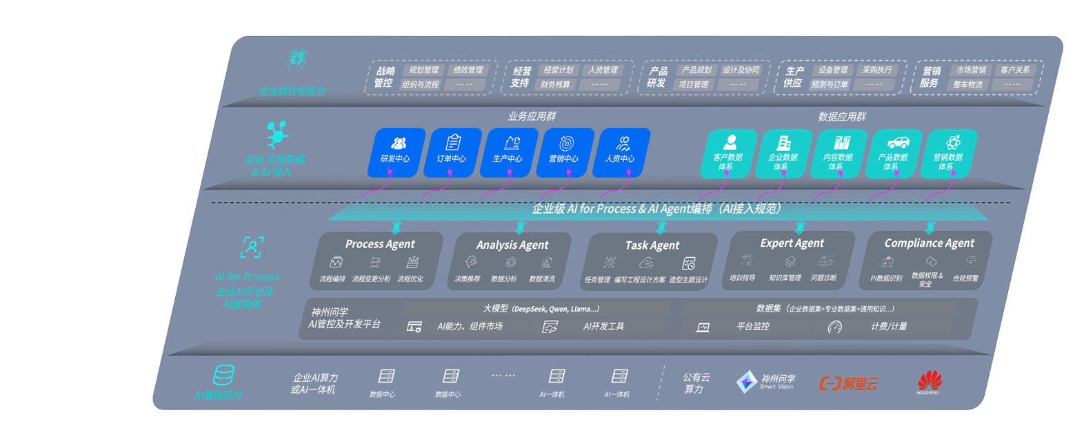 端到端的一站式AI工作空间深度融合了从企业战略规划到日常经营的全流程业务板块,,,定向解决车企内部领域多、、、部门多、、、链条长、、、、场景碎片化等难题,,,,支持车企快速构建以AI为核心的生产力写作体系,,实现任务执行与AI能力的无缝集成与交互